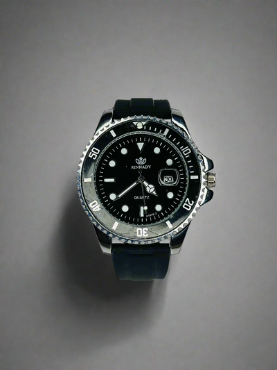 Reginald Men's Luminous Quartz Watch – Black Dial -Black Rubber Band