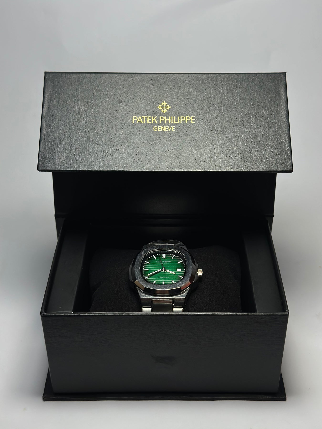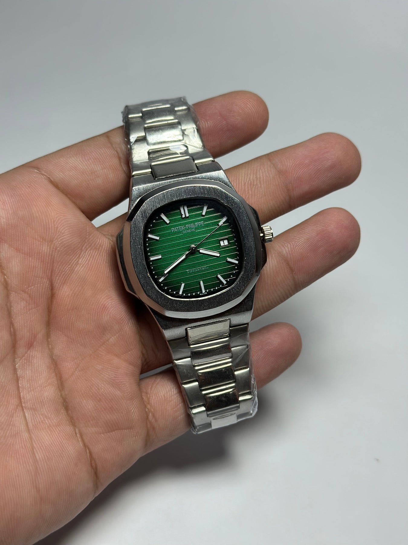 Patek Philippe Nautilus Green Dial Watch - Silver Strap
